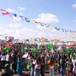 Li Bismilê bi hezaran kes tevî astengiyan jî li Qada Newrozê ya navçeyê kom bûn. Li qada Newrozê coşeke mezin hebû û di dema hilkirina agirê Newrozê de dirûşmên “Bijî serok Apo” û “Bê Serok jiyan nabe” hatin berzkirin. Berdevka Meclisa Jinan a DEM Partiyê Halîde Turkoglû piştre axivî û got ku gel daxwaza azadiya Rêber Apo dike. Halîde Turkoglû xwest ku dewlet di vê mijarê de gavan biavêje.