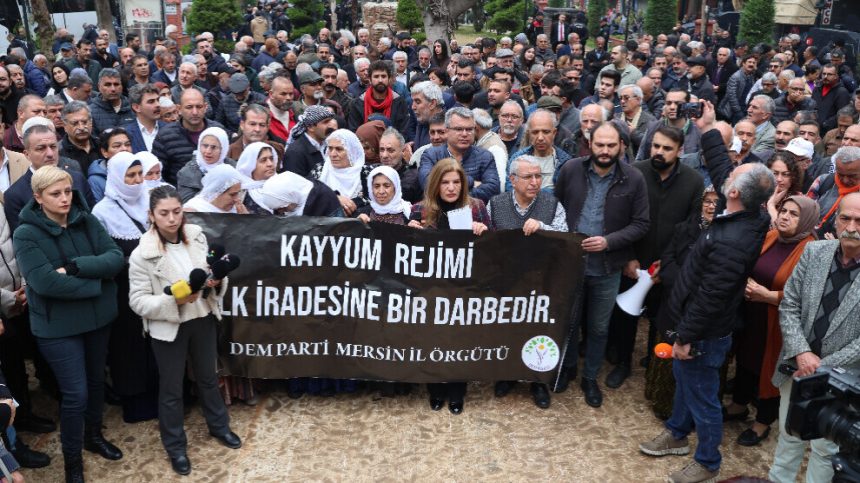Girtina Hevşaredarên navçeya Akdenîz a Mersînê Hoşyar Sariyildiz û Nûriye Arslan û endamên Meclîsa Şaredariyê Ozgur Çaglar, Neslîhan Orûç û Hîkmet Bakirhan, her wiha desteserkirina şaredariyê hate şermezarkirin.