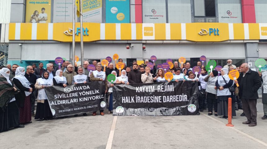 Ji ewil Parlamentera DEM Partiyê ya Mersînê Perîhan Koca axivî û got: “Hevşaredarên me bi operasyoneke kompasê hatin girtin û dîlên siyasî ne. Em ne tenê li dijî xespa qeyûm, her wiha li dijî neheqiyên li her çar aliyên welêt û êrişên ser Rojava û Bendava Tişrînê jî nobetê digirin. Di êrişên Tirkiye û çeteyên SMO’yê de heta niha rojnameger û hunermend jî di nav de nêzî 20 kes hatin qetilkirin. Em xwedî li berxwedana gel derdikevin.”