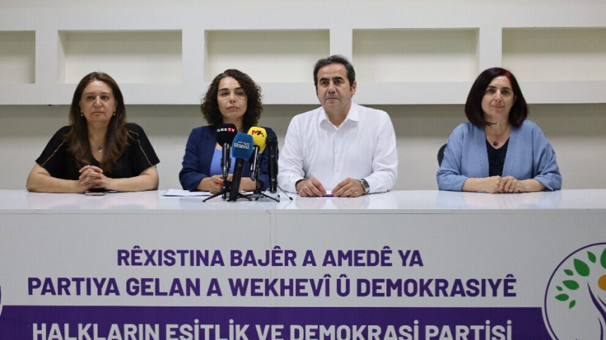 Rêxistina DEM Partiyê ya Amedê têkildarî 1’ê Îlonê Roja Aştiyê ya Cîhanê li avahiya xwe daxuyaniyê da. Hevserokên DEM Partiyê yên Amedê Gulşen Ozer û Abbas Şahîn û parlamenterên DEM Partiyê yên Amedê Adalet Kaya û Sevîla Çelenk di daxuyaniyê de amade bûn.