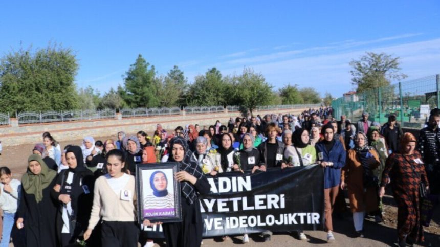 Jinan îşaret kirin ku Rojîn Kabaîşê întîhar nekiriye û hatiye kuştin. Jinan di meşê de pankarta “Cînayetên jinan polîtîk û îdeolojîk e” vekirin. Jinan di meşê de dirûşmên “Bêdeng nebe, qasî ku bêdeng bibî dê dor were te jî”, “Jin jiyan azadî” , “Destê li jinan radibin bila bişikên” , “Rojîn Kabaîş nemire” , “Peymana Stenbolê dide jiyîn” û “Em bêdeng nabin, natirsin û serî natewînin” berz kirin. Jinan piştî meşê qurnefîl danîn ser gora Kabaîşê.