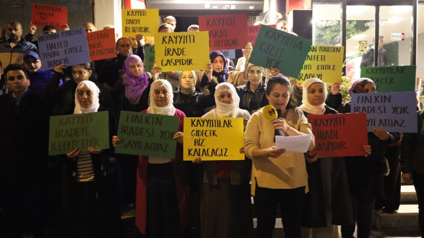 Partiya Wekhevî û Demokrasiyê ya Gelan (DEM Partî) li dijî desteserkirina şaredariyên Esenyurt, Mêrdîn, Êlîh û Xelfetiyê, bi beşdariya gelek kesan li ber avahiyên navçeyê daxuyanî dan çapemeniyê.
