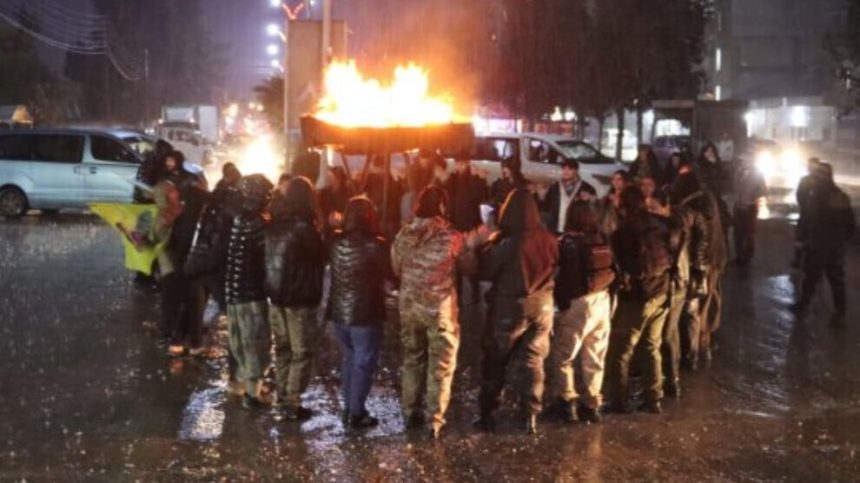 Bi sedan şênî, ku wêneyên Rêber Abdullah Ocalan û alên Hêzên Sûriyeya Demokratîk hilgirtin, ji bo beşdarbûna şahiya pêxistina agir, kom bûn.