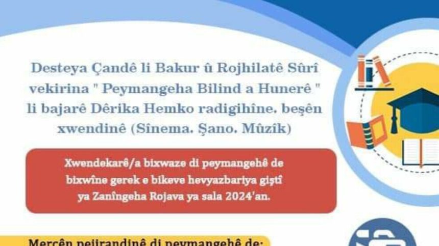 Serlêdanê di 24’ê Tebaxê de destpê kir û wê heta 31’ê Tebaxê dewam bike. Perwerde wê 3 salan dewam bike ku 2 sal li ser teoriyê, sala dawî jî perwerdeya pratîkî be. Bi rêya navendên TEV-ÇAND’ê yên li her bajarên Bakur û Rojhilatê Sûriyeyê, Zanîngeha Rojava ya li Qamişloyê, Zanîngeha Kobanê ya li Kobanê û Komîteya Perwedeyê ya Civaka Demokratîk (KPC-D) a li Şehbayê serlêdan dikare ji bo Peymangeha Bilind a Hunerê bê kirin.”