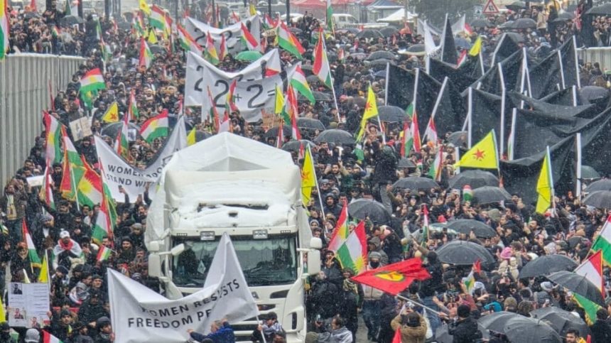 Girseya gel a ku li navenda Silêmaniyeyê li hev kom bû hêjayî dîtinê bû. Gel bi dirûşmên Bijî berxwedana Rojava û Şervanan”, “Rojava ne bi tenê ye, deriyê azadiyê ye” meşiya, li gel berfê û sermayê piştgiriya xwe ya ji bo Rojava nîşan da.