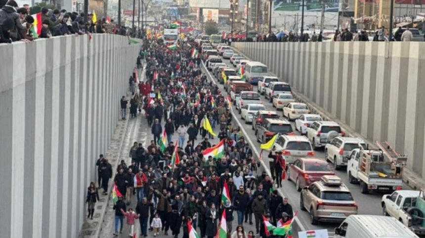 Li Silêmaniyê îro jî bi tevlîbûna hunermend, çalakvan, nivîskar, mamosteyên olî û girseyek zêde ya ji jin, ciwan û xwendekar meşek girseyî ya ji bo piştgiriya Rojavayê Kurdistanê hate lidarxistin.