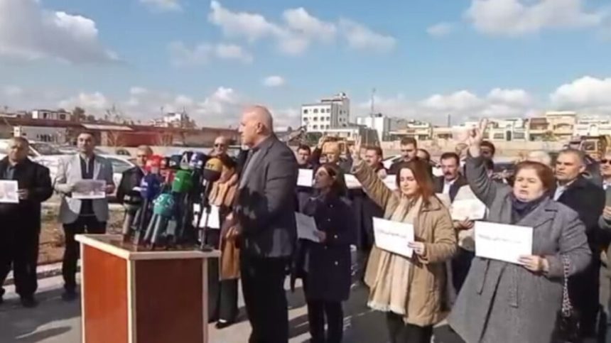 Bi dehan kes li ber derê balyozxaneya Emerîkayê ya li Hewlêrê kom bûn û êrişên dewleta Tirk û çeteyên HTŞ’ê yên ser Rojavayê Kurdistanê şermezar kirin.