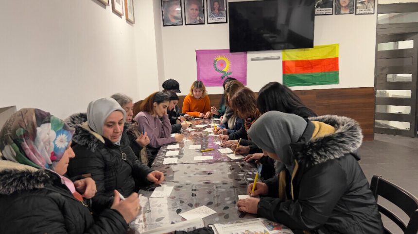 Endamên Meclîsa Jinan a DEST-DAN’ê ku li Berlînê fealiyet dimeşîne, ji bo kampanyayê li Navenda Civaka Kurd a Demokratîk (NCKD) hatin ba hev û kartpostal nivîsandin ku wê ji Rêberê Gelê Kurd Abdullah Ocalan re bişînin.