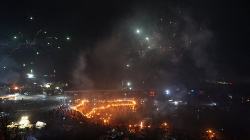 Bi hezaran kesên ku ji her çar parçeyên Kurdistanê hatibûn, berî pîrozbahiyên Newroza sibê ya li Binarê Qendîlê, meşeke bi meşale li dar xistin.