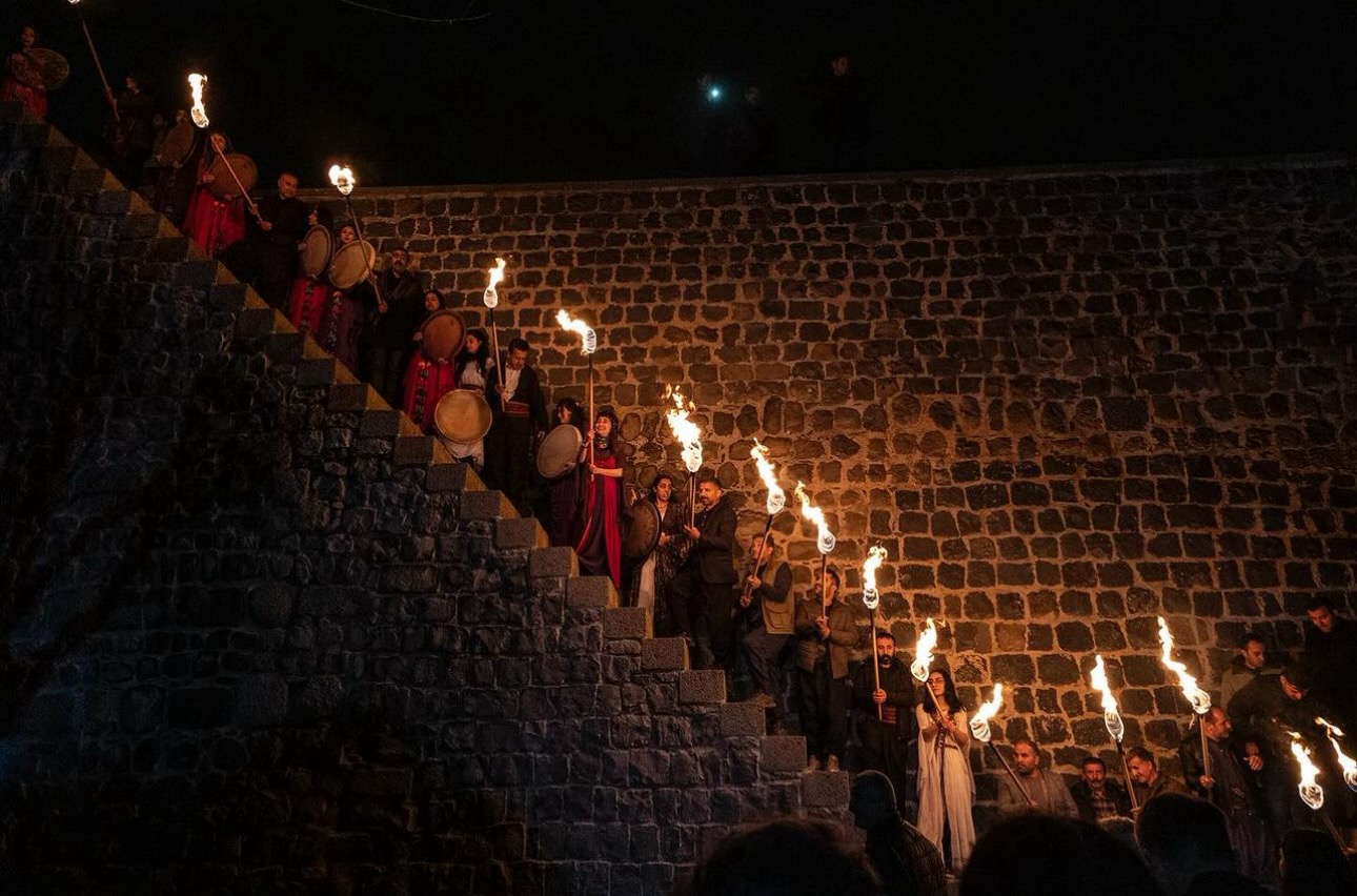 75 kesên li erbanê dixin, bi 75 erbaneyan derketin ser Bircên Amedê û bi erbane û meşaleyan Newroz pîroz kirin.