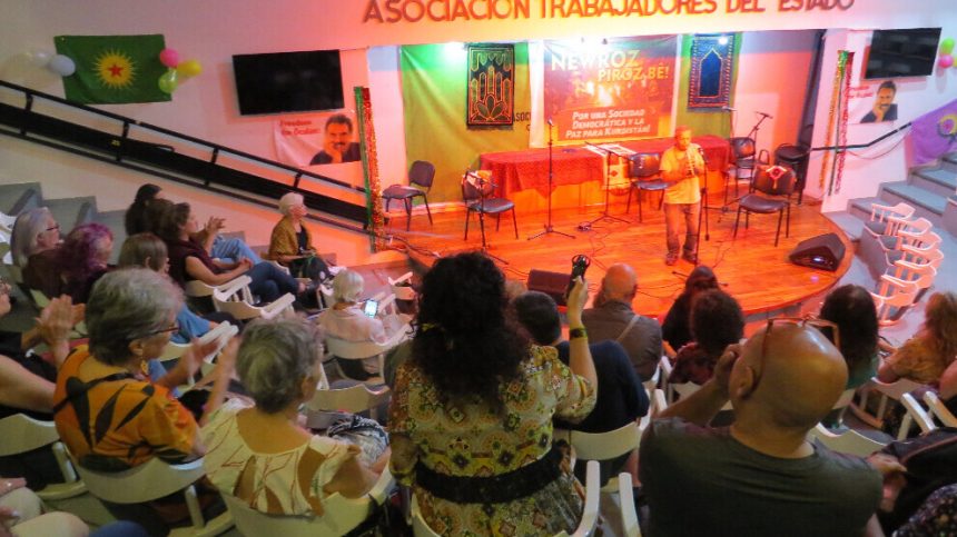Di çalakiya ku bi pêşengiya ATE-Nacional pêk hat de li ser Tevgera Azadiya Kurdistanê û çanda Kurd axaftin hatin kirin. Di axaftinan de behsa dîroka Newrozê û wateya wê ya ji bo gelê Kurd hat kirin.