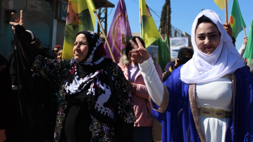 Bi nêzîkbûna 8`ê Adarê re bi dehan şêniyên navçeya Çilaxa ya kantona Cizîrê li ser banga Kongra Star meşiyan.
