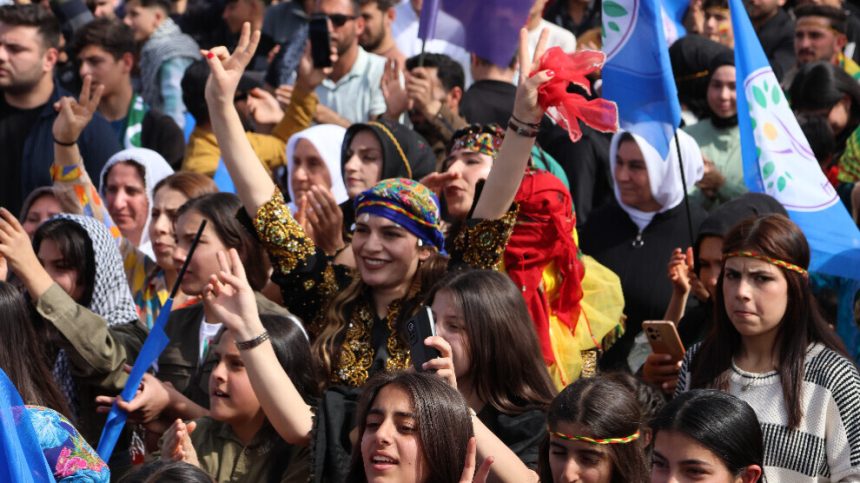 Jinên, tevlî pîrozbahiyê bûn demekî dirêj li ber stranên Kurdî govend gerandin. Li qadê gelek caran dirûşma “Jin, jiyan, azadî” hate berzkirin. Pîrozbahî bi rêzgirtinê destpê kir û piştre dirûşmên “Şehîd namirin” û “Hezar silav ji Îmraliyê re” hatin berzkirin. Komîteya Amadekar a Newrozê, Hevseroka DEM Partiyê ya Bajar Sema Aîşeoglû, Hevserokê DBP’a Bajar Mahmut Manas, hevserokên DEM Partî û DBP’ê gel silav kirin. Piştre jî Parlamenter Omer Ocalan axivî û got ku Curnê Reş ji bo têkoşîna azadiyê xwedî cihekî girîng e.