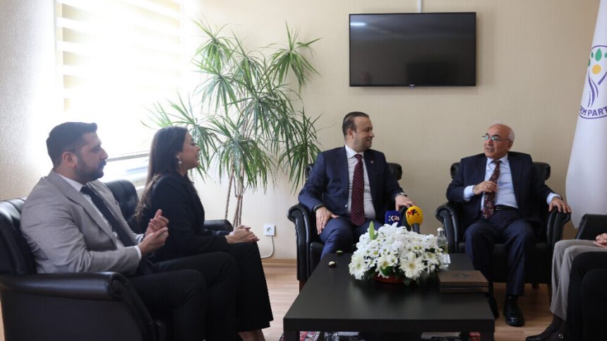 Şandeyên ku hatin navenda giştî ji aliyê Alîkarê Hevserokên Giştî Ozturk Turkdogan, Parlamentera Amedê Ceylan Akça, endamê Meclîsa Partiyê Îhsan Seylan ve hatin pêşwazîkirin. Bi navê Partiya Gelecek endamê Desteya Rêveberiyê û Parlamenterê Konyayê Hasan Ekîcî, Alîkara Serokê Serokatiya Ragihandinê Nazli Ustun di şandeyê de hebûn.
