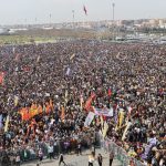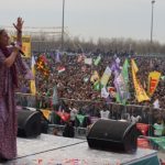 Di vê kêliyê de bi sed hezaran kesî dirûşma ‘Bijî Serok Apo’ qîriyan. Wêneyên mezin ên Rêber Apo jî hatin hildan.