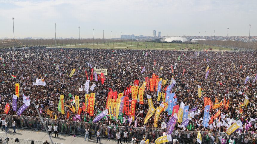 Nirxandinên Newrozê yên Rêber Apo ji dengê wî li Yenîkapiyê bi sed hezaran kesî hate guhdarîkirin. Wêneyê mezin ê Rêber Apo li ekranên li ser dikê hate nîşandan.