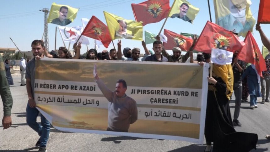 Di çarçoveya pêngava navneteweyî ya bi dirşûma “Ji Abdullah Ocalan re azadî û ji pirsgirêka Kurd re çareserî” de bi sedan şêniyên bajarokê Kesra yê kantona Dêrazorê meşiyan.