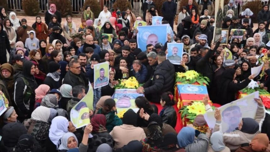 Şêniyên bajarên Dêrik, Girkê Legê û Çilaxa cenazeyên şehîdan ji Nexweşxaneya Şehîd Hogir a Dêrikê wergirt û bi karwanekî ber bi pakrewangeha Şehîd Xebat ve bi rê ket û merasîmek hat lidarxistin.