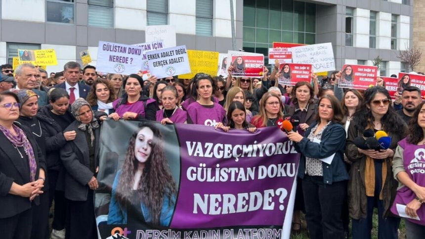 Platforma Jinan a Dersimê, têkildarî geşedanên di çarçoveya lêpirsîna Gulistan Dokuyê de ku 6 sal berê hatibû windakirin, li pêşiya Edliyeya Dêrsimê daxuyaniyê didin. Endamên malbata Doku, wekîl û gelek jin tevlî daxuyaniyê bûn. Di daxuyaniyê de wêneyên Gulistan Dokuyê û pankartên “Ne ji bo jinên winda bûn, ji bo yên hatine windakirin edalet”, “Mêr êriş dike, dewlet diparêze”, “Ne edaleta mêr, edaleta rast”, “Ji bo Gulistan Doku, Rojîn Kabaîş û hemû jinên hatine windakirin edalet” û gelek pankart û dovîz hatin hilgirtin. Beşdaran gelek caran dirûşmên “Bijî piştevaniya jinan”, “Gulistan Doku li ku ye?”, “Ji bo Gulistanê edalet”, “Cînayetên jinan polîtîk in”, “Kujeran neparêze, bidarizîne” û “Dê jin hesabê ji kujeran bipirsin” hatin hilgirtin.