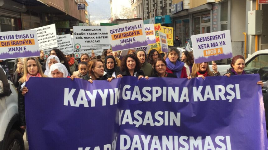 Endama Cemxaneya Mêrsînê Aysel Klavuz Demîr, Hevseroka AYKAY-DER’ê Suphiye Bayav û ji koma Feminîstên Serbixwe Îlgî Kahraman jî di çalakiyê de gotin ku kesek nikare vîna gel xesp bike, dê li dijî vê neheqiyê heta dawiyê li ber xwe bidin, dê serî netewînin.