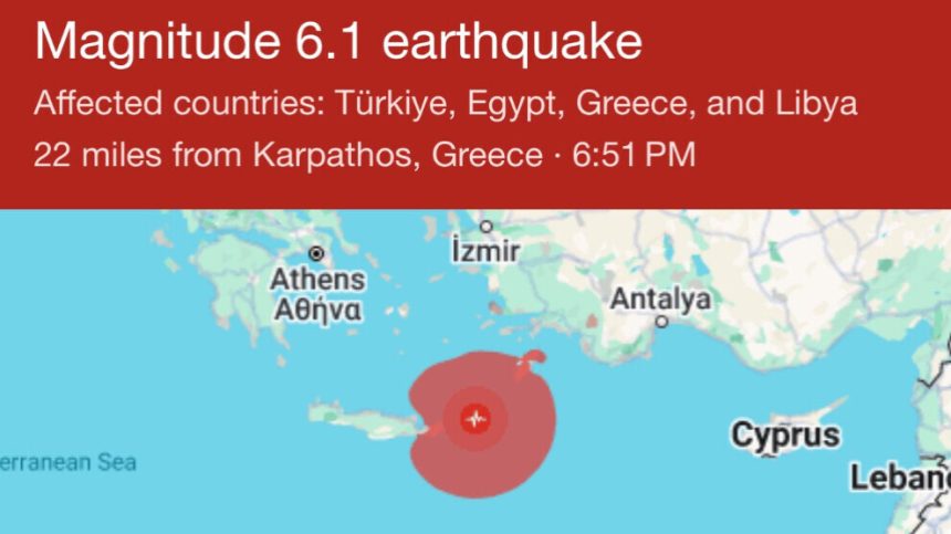 Ajansa nûçeyan a Yewnan ANA û qenala televîzyona dewletê ERT’ê diyar kir ku erdhej li peravên bi 15 kîlometreyî dûrî girava Kasosê ya Yewnanistanê rû da. Li gorî USGS’ê erdhej bi dema herêmî saet di 01:51’ê de bi 78 kîlometreyan li binê erdê qewimî.