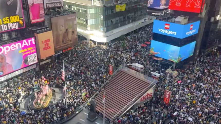 Lê belê hin lîderên komarger xwepêşandêr bi “terorîstiyê” sûcdar kirin. Serokê Meclîsa Nûneran Mike Johnson çalakî weke “Seferberiya nefretê ya li dijî Emerîkayê” pênase kir û got, “Hûn ê li wê derê piştevanên Hamasê û endamên Antifa’yê bibînin.”