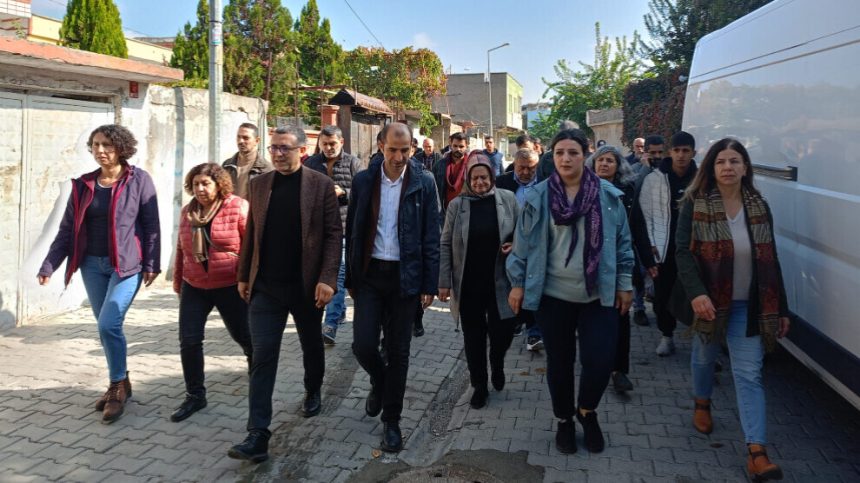 Parlamenterên CHP’ê Turkan Elçî û Sezgîn Tanrikûlû jî bi komekê ber bi avahiya şaredariyê ve meşiyan.