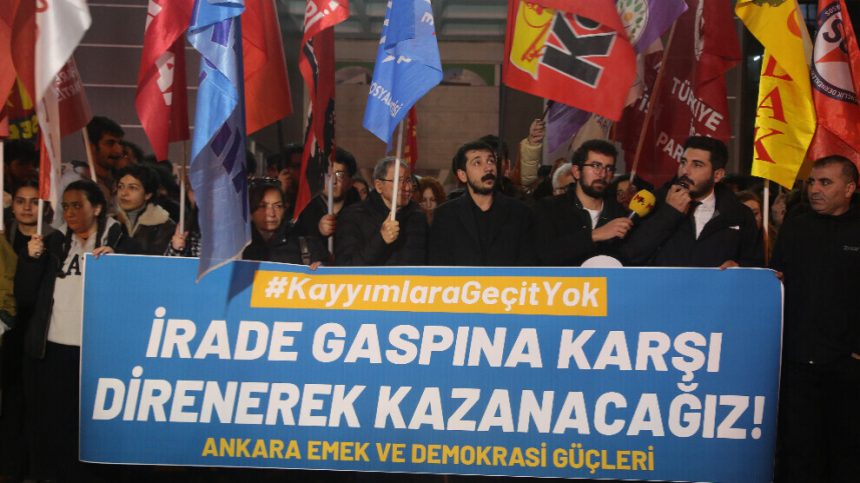 Hêzên Ked û Demokrasiyê ya Enqereyê li hemberî desteserkirina Şaredariya Akdenîzê ya di bin rêveberiya Partiya Wekhevî û Demokrasiyê ya Gelan (DEM Partî) û Şaredariya Beşîktaşê ya di bin rêveberiya Partiya Gel ya Komarê (CHP) de li ser Cadeya Sakarya ya li navçeya Çankayayê daxuyaniyek dan.  Parlamenterê DEM Partiyê yê Colemêrgê Onûr Duşunmez û gelek kesên din beşdarî çalakiyê bûn.