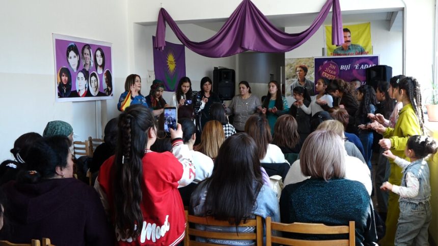 Ewil peyama Rêber Apo ya bi wesîleya 8’ê Adarê hatibû şandin, hat xwendin. Piştre Endama Yekîtiya Jinên Azad Seyana Celad axivî û 8’ê Adarê li hemû jinên têkoşer û kedkar pîroz kir. Seyana Celad, diyar kir ku divê jin têkoşîna xwe mezintir bikin û azadiya xwe misoger bikin. Seyana Celad got, “Weke jinên Kurd me bi felsefa Rêber Apo re xwe nas kir û me bendên koletiyê qetandin. Rêber Apo ji bo ku jinek azad biafirîne têkoşînek pir mezin da û bi ser jî ket. Ji bo wê pêwîste em ji bo azadiya fîzîkî ya Rêber Apo têkoşîna xwe berfirehtir bikin.”