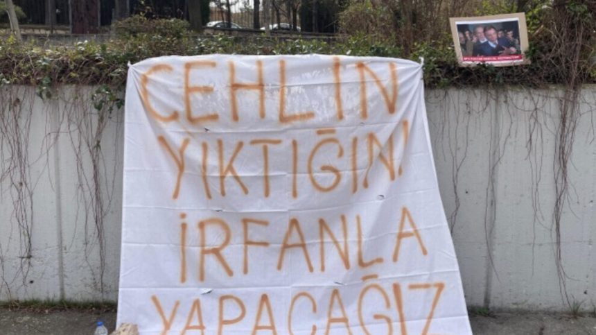 Xwendekar li ber fakulteyê ya li Eskîşehîrê li hev kom bûn û li ber pankarta bi nivîsa ‘Fakulteya Alî Îsmaîl di boykotê de ye’ daxuyaniyek dan.