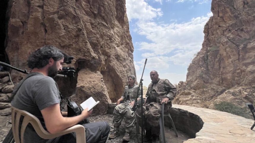Piştî çend gavên din hîna em negihiştin deriyê şkeftê, li aliyê çepê min rojnamevanek ferq kir. Li pêşberî wî/ê, min Besê Hozat dît ku di nava çiqên daran de min bi zorî rûyê wê ferq kir. Ji ber mesafeyê min dengê wê nedibîhist, lê bi jest û mîmîkan her tişt dihat gotin. Hevalê min ê qemeraman destê xwe da lêvên xwe, got, ‘bêdeng be’ û me dewam kir. Piştî çend merdîvenên din, min gerîlayên ku li ber deriyê şkeftê disekinîn dît.