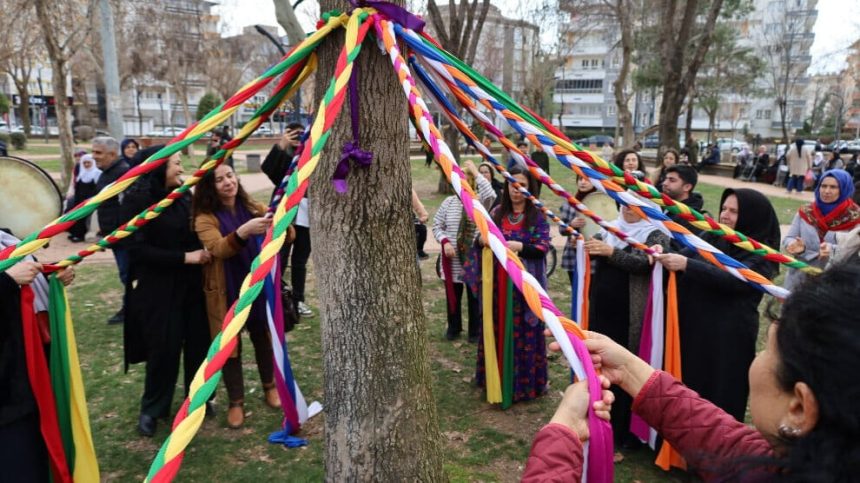 Li Êlihê jî jin li Parka 8’ê Adarê ya Jinan civiyan. Jinan li ber erbaneyan govend gerandin, li dora daran şehrikên rengîn honandin û dirûşma “Jin, jiyan, azadî” berz kirin.