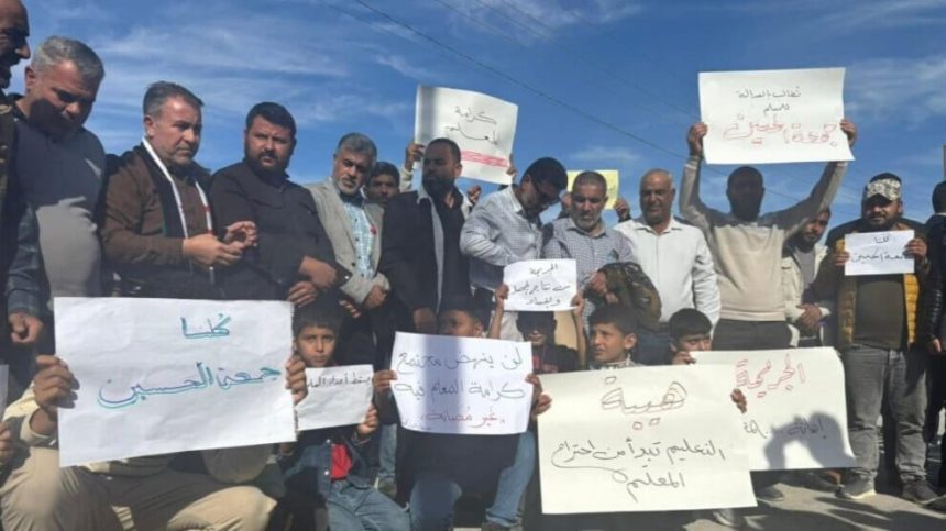 Bi dehan kes ji şêniyên bajarê Girê Spî ji bo şermezarkirina êrişa li dijî rêveberê Dibistana Sebax Cuma El Hisên çalakiyek li dar xist.