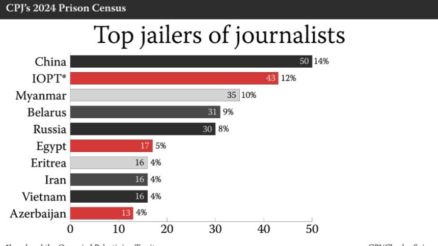 CPJ’ê “sê sûcdarên herî xirab ên gerekstêrkê” şermezar dike. CPJ’ê diyar kir ku ji 1’ê Kanûnê û vir ve Çîn 50 rojnamevanan, Îsraîl 41 rojnamevanan û Myanmar jî 35 rojnamevanan girtî dihêle.