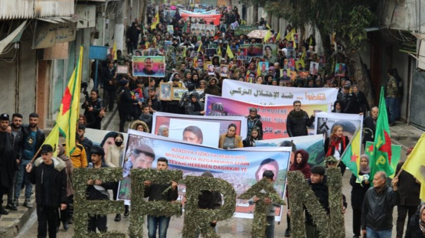 Di meşê de wêneyên Rêberê Gelê Kurd Abdullah Ocalan, Şehîdên Berxwedana Serdemê û Ehmed Xalid Mamo hatin hilgirtin û pankartên “Ji dagirkeriya Tirk re na”, “Ji êrîşên dewleta Tirk ên li ser Herêma Bakur û Rojhilatê Sûriyeyê re “na, “Ji dagirkeriya Efrînê re na”, “Efrîn rûmeta me ye, em wê biparêzin” û “Li dijî dagirkeriya Tirk rabin ser piyan û wê ji hemû axa Sûriyeyê derxînin” hatin hilgirtin.