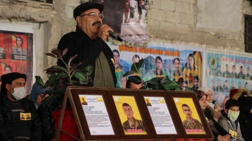 Piştî deqeya rêzgirtinê, endamê Meclisa Malbatên Şehîdan Mihemed Ekrem sersaxî da malbatên şehîdan û diyar kir ku şehîdan di oxira parastina destkeftiyên gelê xwe de canê xwe feda kir.