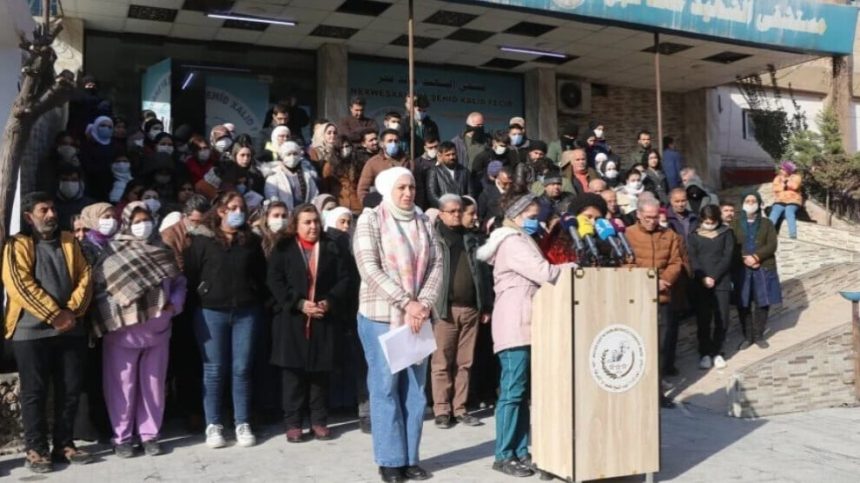 Daxuyanî li pêşiya Nexweşxaneya Xalid Fecir bi amadebûna bi dehan xebatkarên qada tenduristiyê hat dayîn. Mamoste Zozan Dehar û cîgira hevserokên meclisê Firyal Arif daxuyanî xwend.