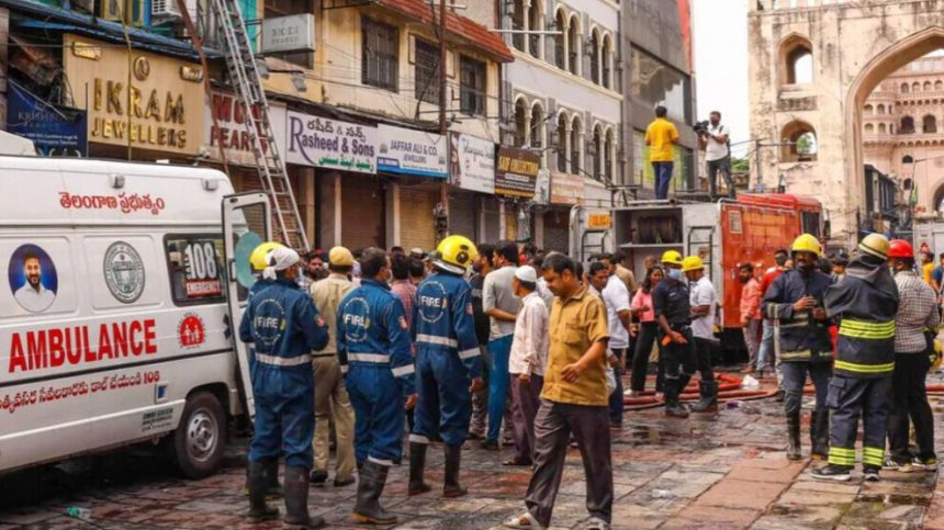 Di daxuyaniya Departmana Rewşên Lezgîn a Eyaleta Telangana de hate ragihandin ku agir bi avahiyeke ji sê qatî ket.