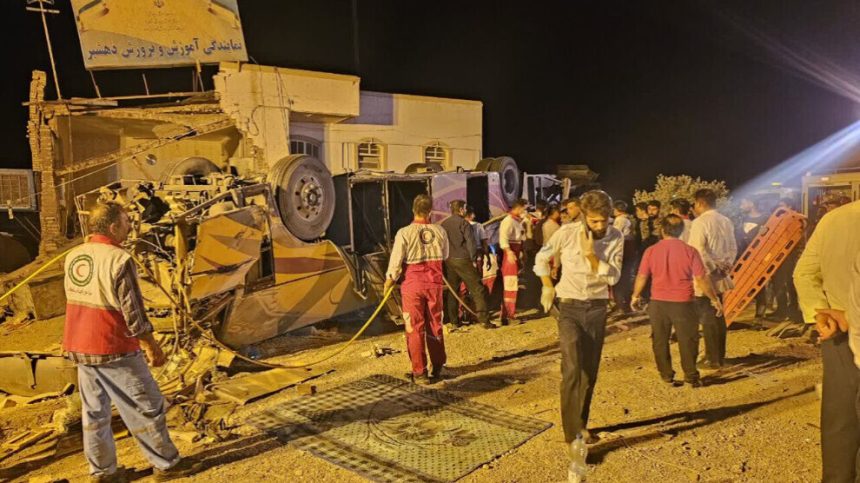Ajansa nûçeyan a fermî IRNA’yê ragihand ku qeza roja Yekşemê derengiya şevê rû daye, lê derbarê bê ka çend kes di otobusê de hebûn, agahî neda. Li gorî ajansa nûçeyan di qezayê de herî kêm 3 mirine û 48 kes jî birîndar bûne.