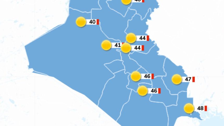Li parêzgehên Besra û Mîsanê yên li başûrê Iraqê roja Pêncşemê gihîşt 49 dereceyan û li herêma Zîqarê jî gihîşt 48 dereceyan. Hate ragihandin ku germahiya herî bilind a sala 2025’an hat tomarkirin.
