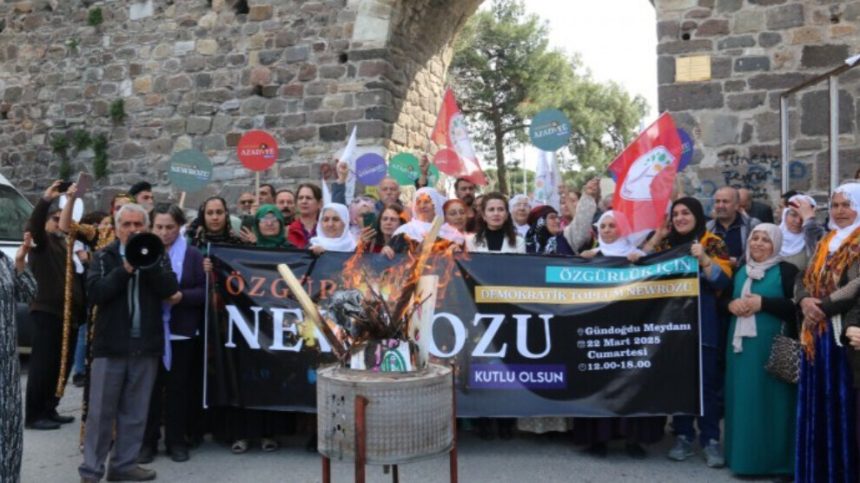 Bi pêşengiya Tevgera Jinên Azad (TJA) û Meclîsa Jinan a DEM Partiyê ya Îzmîrê bi dirûşma “Em li dijî qirkirina jinê serî hildidin, ber bi azadiyê ve dimeşin” daxuyaniyeke çapemeniyê hat dayîn û li Îzmîrê starta pîrozbahiyên Newrozê hate dayîn. Daxuyaniya ku dihat xwestin li Kadîfekaleyê bê dayîn, ji ber astengiya polîsan li ber kelehê hat dayîn. Di daxuyaniyê de pankarta “Newroza Azadiyê pîroz be” hat hilgirtin. Girseyê bê navber dirûşmên “Ji şer re na, aştî a niha”, “Newroz pîroz be” û “Şehîd namirin” berz kir.
