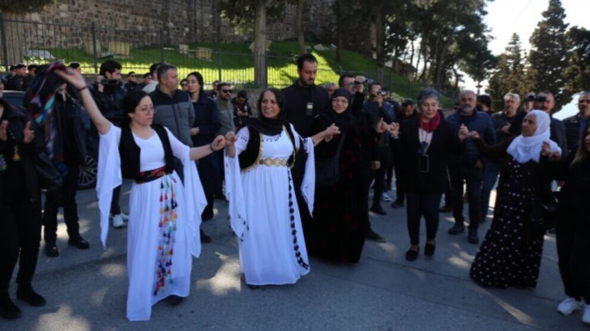 Girse pişt re guh neda qedexeyan û bi dirûşme, stran û tilîliyan li hundirê kelehê meşek li dar xist. Girseyê li derveyî kelehê govend gerand.