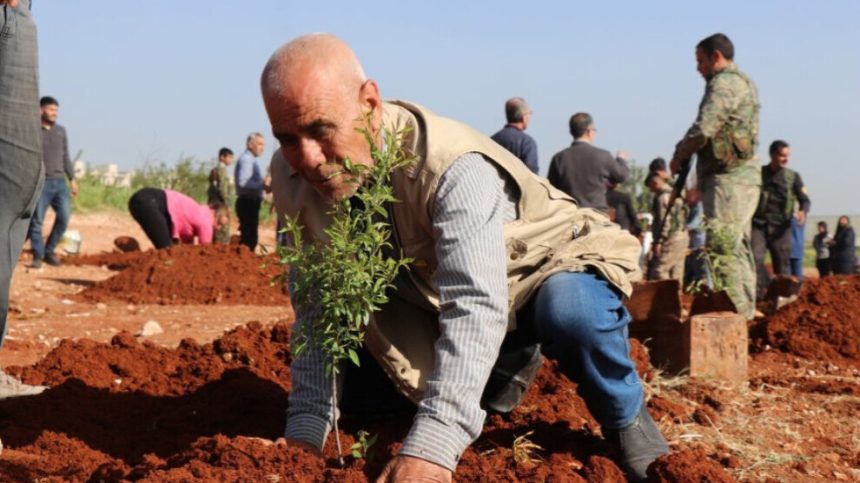 Şêniyên bajarê Helebê bi beşdariya şêniyan û endamên saziyên sivîl û xizmetguzarî 300 darên zeytûnan, behîv, mişmiş û xox li qada Newrozê ya li herêma Şiqêf a bakurê taxa Şêxmeqsûd hatin çandin.