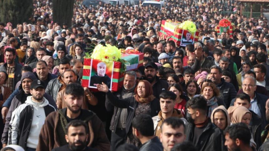 Bi hezaran şêniyên Kantona Firatê sazî û dezgehên girêdayî Rêveberiya Xweser, Salih (Salih Mistefa) ê di 8`ê Çileyê de li Dêra Zorê, Mistefa Ebdî 8`ê Çileyê li Sirînê, Canfeda Amara (Nihar Cûma) di 2`ê Kanûna 2024`an li Şehba, Argêş Ereb (Elî Xelef) di 21`ê Kanûna 2024`an li Bendana Tişrînê, Mazlûm Heleb (Ednan Casim) di 25`ê Kanûna 2024`an li Bendava Tişrînê, Azad Şêx Hisên di 8`ê Çileya 2025`an li Bendava Tişrînê, Egîd (Mihemed Hemo) di 10`ê Çileya 2025`an li Sirînê, Elî Ebas di 8`ê Çileya 2025`an li Sirînê Şehîd bûbûn, îro li pakrewangeha Şehîd Dîcle ya li başûrê bajarê Kobanê bi merasîmeke bi heybet veşartin.