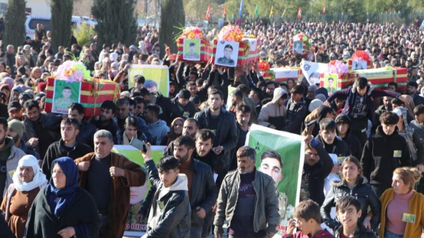 9 şehîdên QSD, Komandos, Hêza Taybet a Hêzên Ewlekariya Hundirîn (H.A.T) û Jinên Zenûbiya li Kobanê bi merasîmekê hatin veşartin.