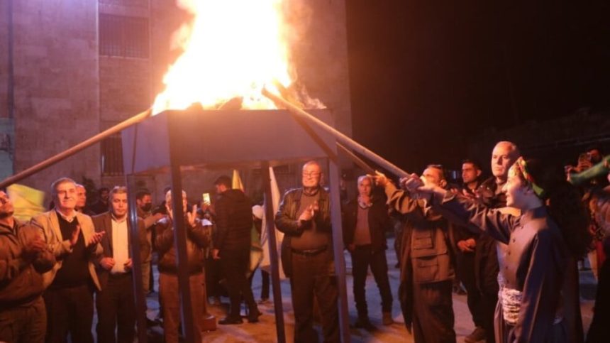 Rêveberiya Xweser a bajarê Kobanê û Komîteya amadekar a çalakiyan a Newrozê bi boneya 21’ê Adarê Cejna Newrozê daxuyanî da û agirê Newrozê pêxist.