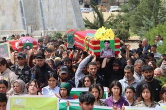 Daxuyanî li ser navê Rêveberiya Hîlala Zêrîn a Kantona Firatê ji aliyê Necle Bozan ve hate xwendin.
