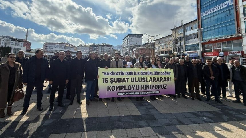 Platforma Saziyên Demokratîk a Çewlîgê li Qada Bajêr daxuyanî da. Hevserokê DBP’ê yê Çewlîgê Şevket Kalindamar ji bo têkoşîna li dijî komployê bê xurtkirin bang kir. Hevserokê DEM Partiyê yê Çewlîgê Sedat Ormangoren jî got: “15’ê Sibatê ne tenê dîrokek e, roja fêmkirina vê destwerdana tarî, teşhîrkirina wê û têgihîştina heqîqetê ye. Di heman demê de banga xurtkirina têkoşîna aştî û demokrasiyê ya gelan e.”