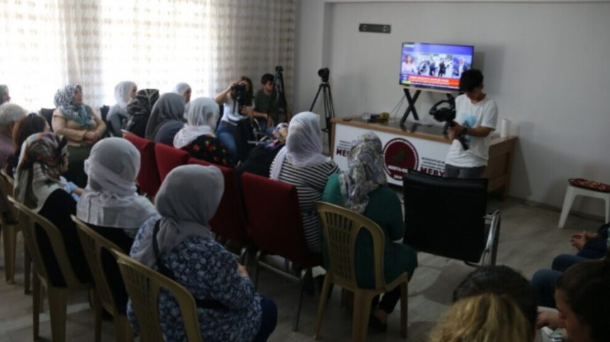 Li Êlihê jî dîmenekî bi heman rengî hebû. Mirovên li salona MEBYA-DER’ê li hev kom bûn, pêvajoyê ji nêz ve dişopînin. Dayikan diyar kirin ku ji bo mayindebûna aştiyê azadiya fîzîkî ya Rêber Apo şert e.