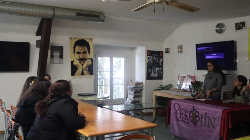Piştî sînevîzyonê atolye bi berzkirina dirûşmeyên “Jin Jiyan Azadî” û ”Bijî Serok Apo” bi dawî bû.